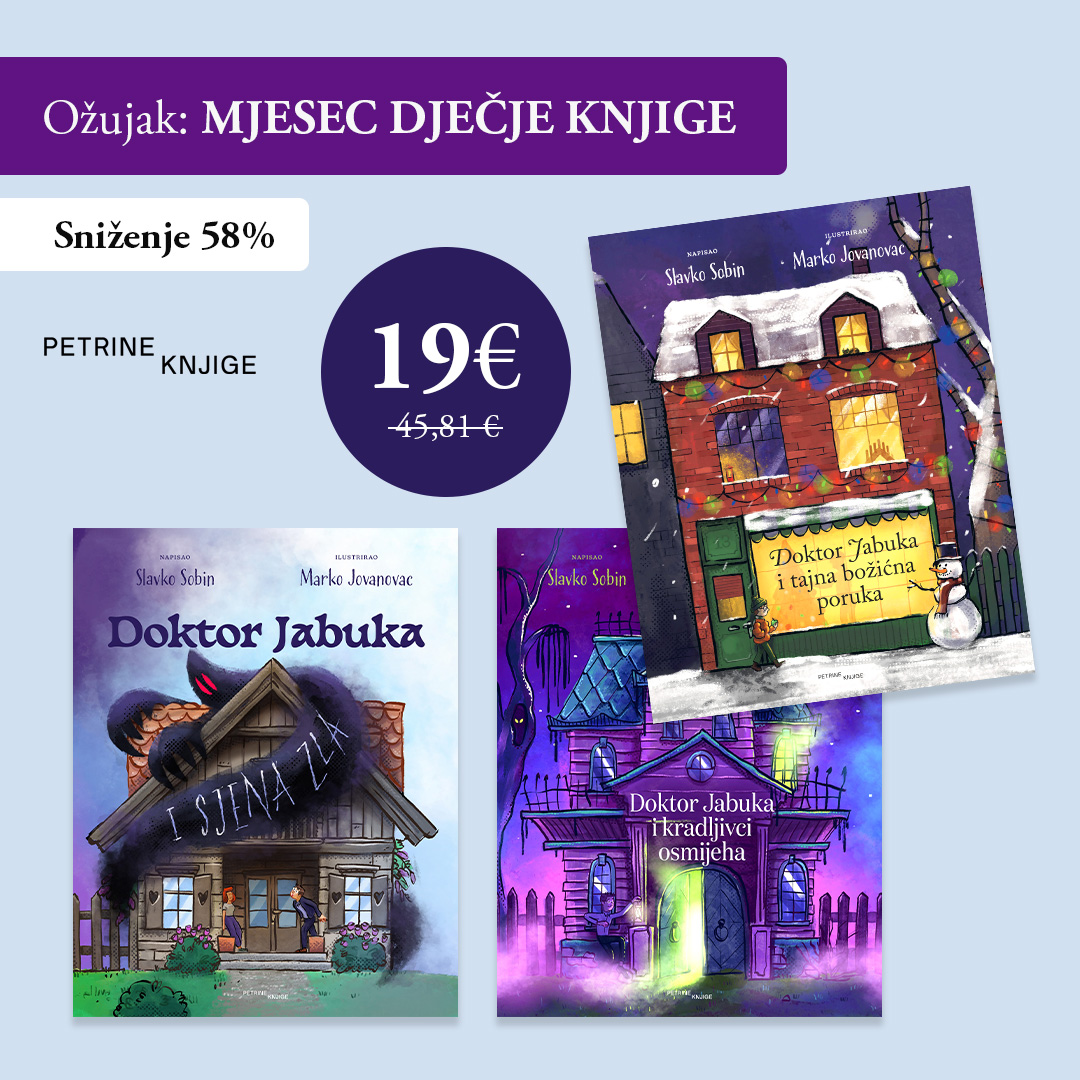 AkcijaPovodom Mjeseca dječje knjige odlične slikovnice o Doktoru Jabuci možete kupiti uz 58,50% popusta za samo 19,00 umjesto uobičajenih 45,81 eura. Akcija traje do 31. ožujka.