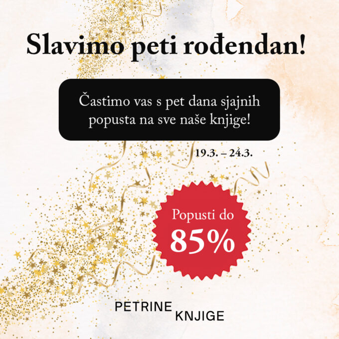 Akcija, Biblioteka Beletristika, Biblioteka Dječje knjige, PublicistikaPovodom našeg 5. rođendana, tijekom punih pet dana častimo vas s popustima do čak 85%! Akcije se odnose na sve naše knjige (publicistika i beletristika), osim određenih dječjih naslova. Popusti traju od 19. ožujka (četvrtak) do 24. ožujka (utorak) samo na webu Petrinih knjiga. Sve naše knjige na popustu potražite OVDJE.
